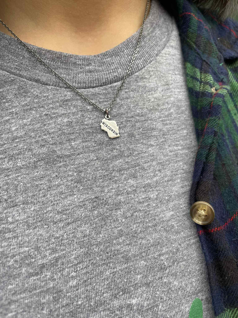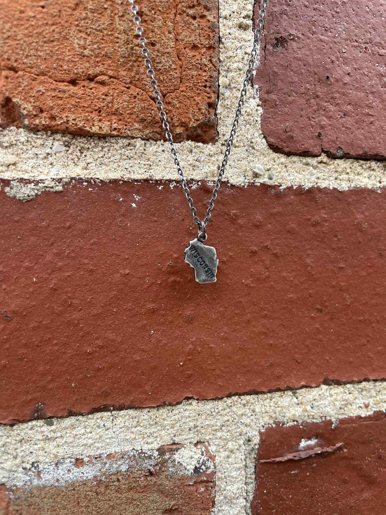 Metal: Silver-plate over brass on pendant, sterling silver chain