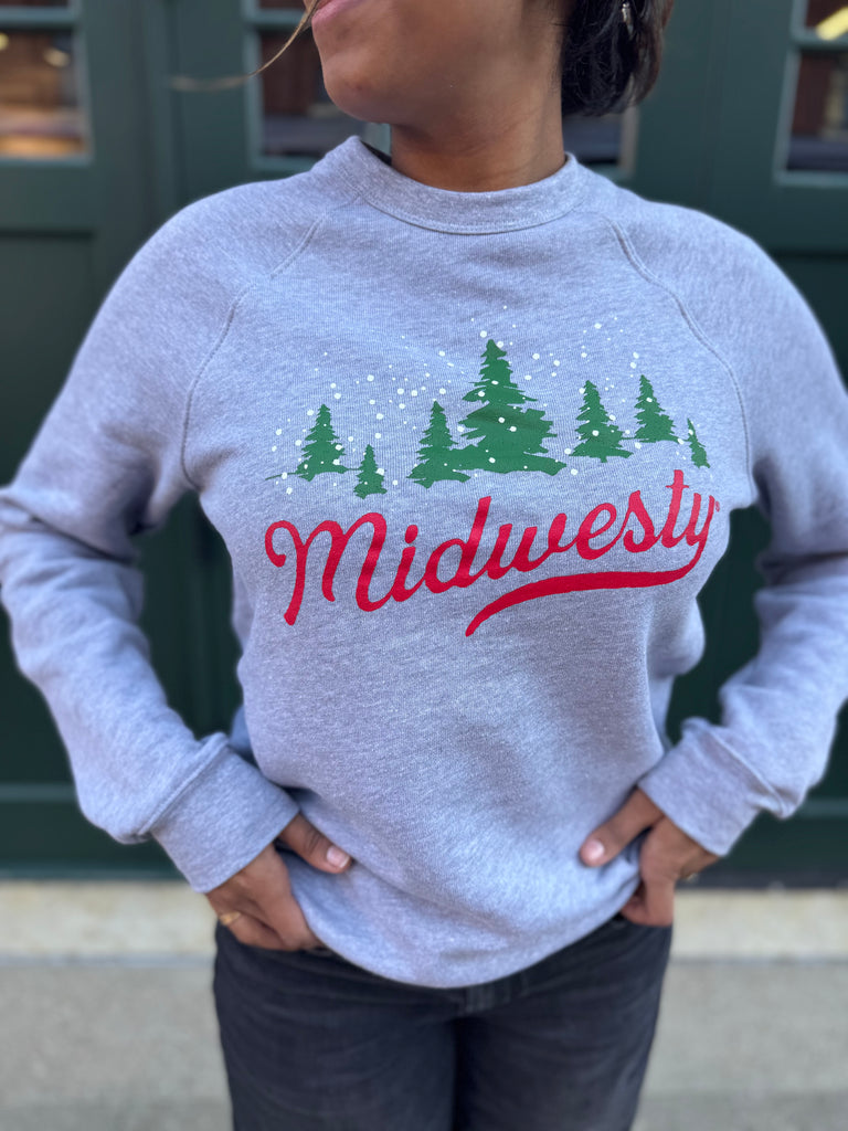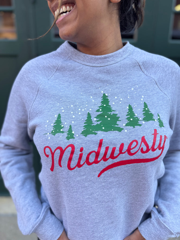 Midwesty Crew in Gray..Midwesty is the word we use to describe our favorite places, things & people. It’s the cabin you spent a week at as a kid. The one that had the buck hanging on the wall, scratchy plaid sofa & lake that taught you how to swim. It’s the embrace of our changing seasons. But most importantly, Midwesty is you. Down to earth, lover of family tradition, & person who always remembers their roots.