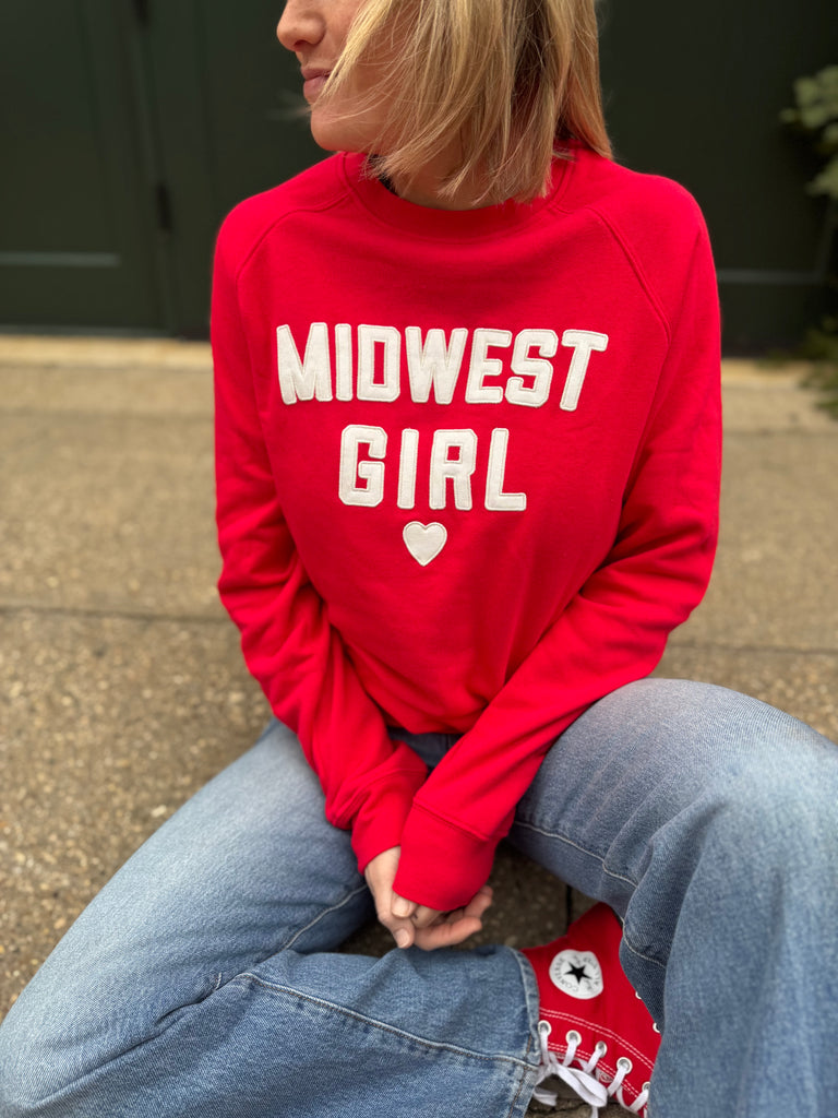 Midwest Girl Crew in Red..your new "go to". This crew is what all Midwest Girl's dream about. Perfect with denim, classic, & so iconic. It's SO soft. A total lived in feel.